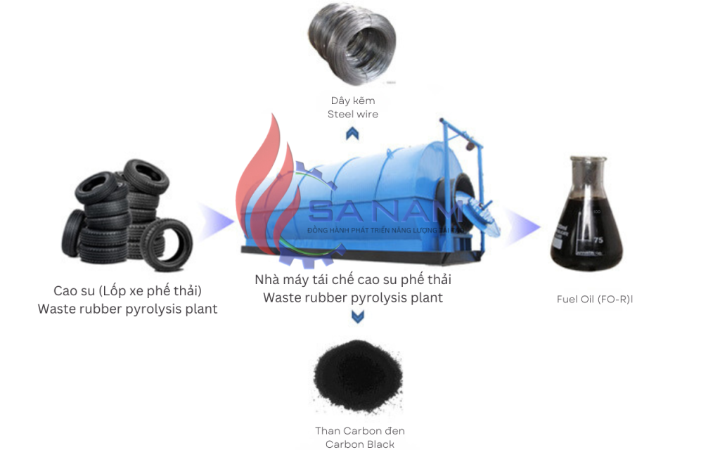 Hệ thống nhiệt phân cao su là hệ thống sử dụng nhiệt độ cao để phân hủy cao su thành dầu FO-R. Dầu FO-R là một loại nhiên liệu lỏng, có thể được sử dụng thay thế cho dầu DO, FO,…